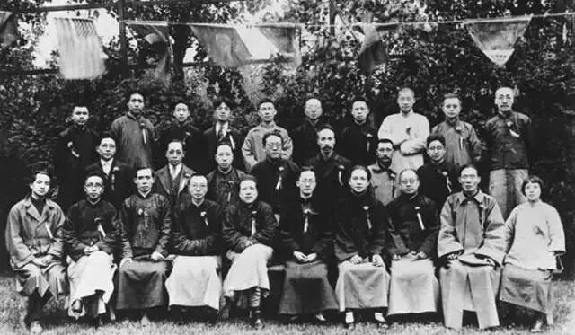 △1924年5月,国民党上海执行部部分成员在孙中山寓所合影。后排左二为毛泽东。