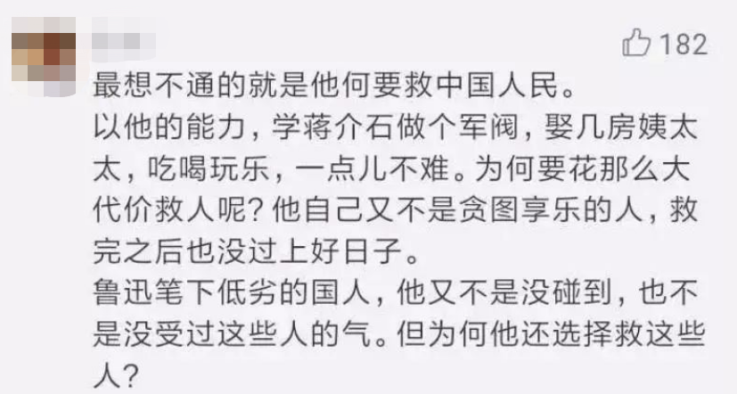 想不通为什么毛泽东要救中国人民?以他的能力,学蒋介石做个军阀,娶几房姨太太,吃喝玩乐,一点儿也不难。鲁迅笔下低劣的国人,他又不是没碰到,也不是没受过这些人的气,但为何他还选择救这些人?