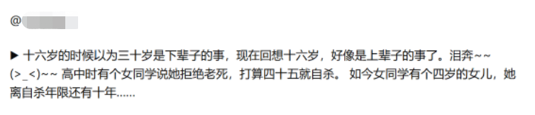 都像极了在13/14岁才会出现的极端想法:到29岁就自杀。因为30岁太可怕。