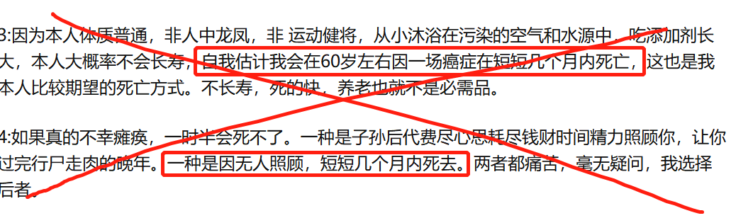 还有人认为,死亡也是一种权利,不到60岁就自杀,一了百了,也挺好。