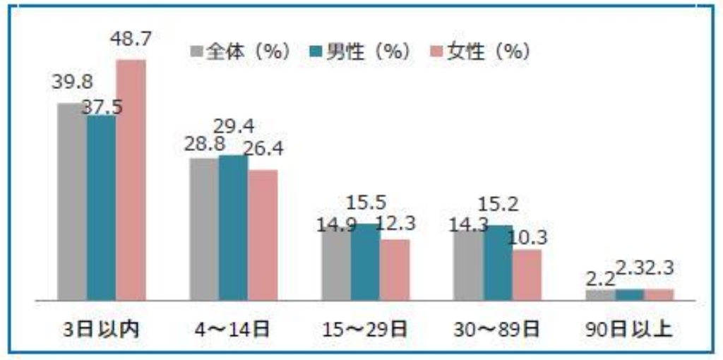 (孤独死尸体被发现天数男女比例 | 图源:《第三次孤独死现状报告》)