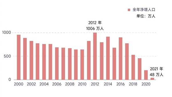 2021年,全中国人口净增长48万,总和生育率更是已经降低到1.1左右。