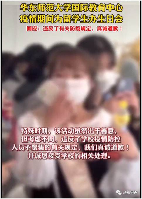 要说绝对没温度也是冤枉上海了。比如华东师大国际教育中心,违反抗疫规定搞聚会,为洋大人过生日。