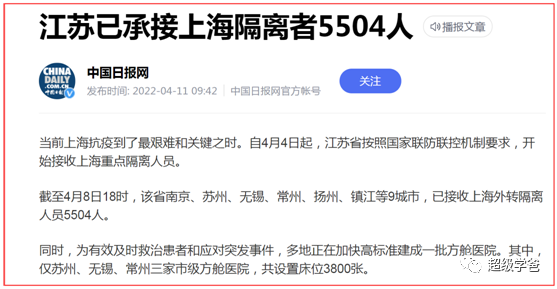 而江浙两省,还筹措了六万间隔离房间,用于接受上海的密接人员。其中扬州的3300间已经有人入住,国家财政买单。