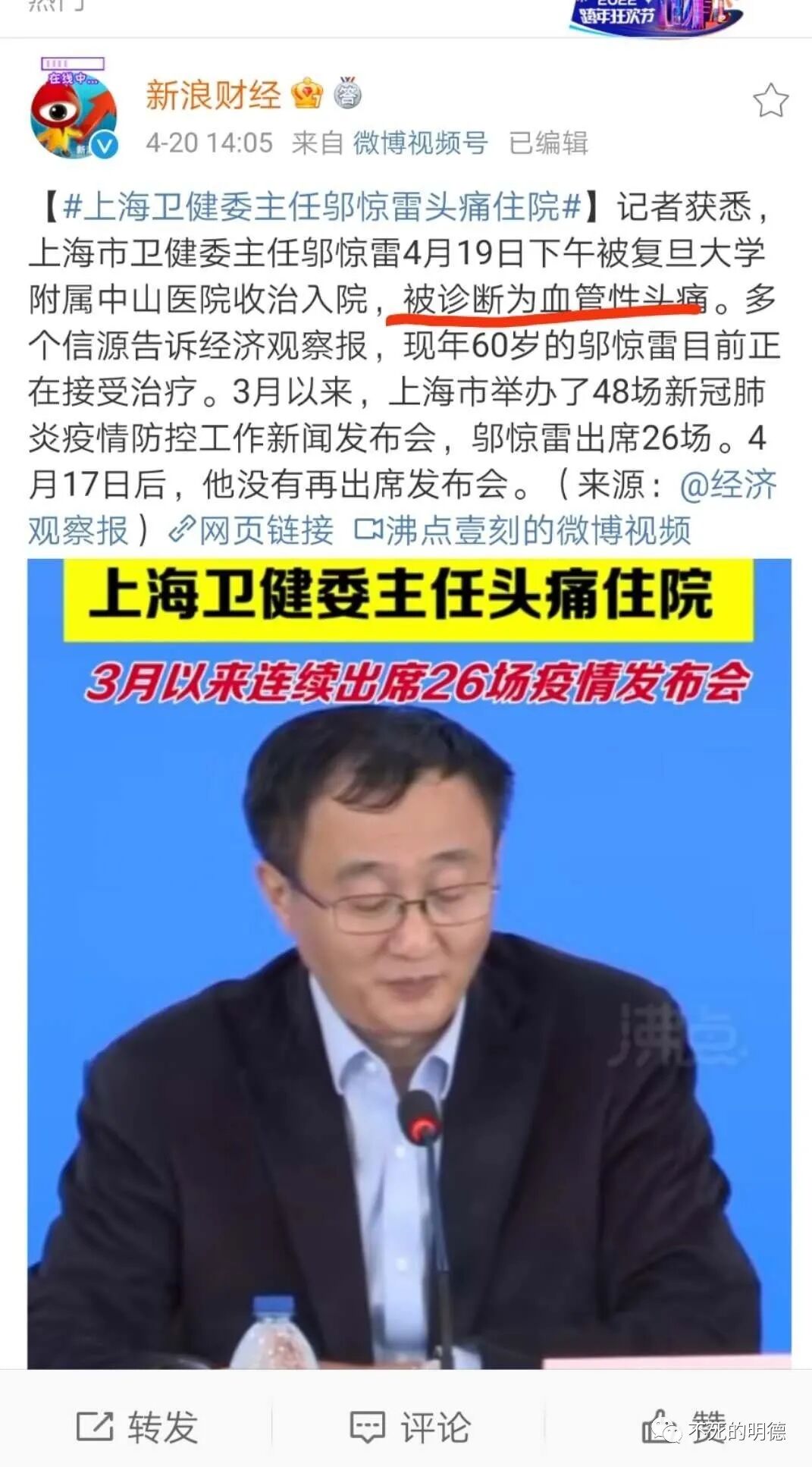 惊闻上海卫健委主任邬惊雷同志因为头痛入院,有几点感触,分享给诸位。