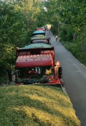 而收购所谓青储饲料的卡车之多,更绝不会是几家养殖场所能有的规模。有视频指,排队等着装小麦青苗饲料的卡车,多达150多部,队排了很长、很长。