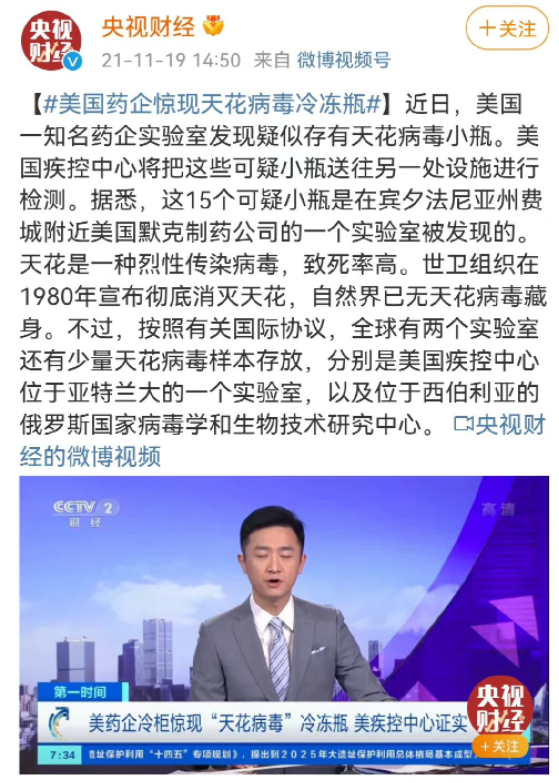 第四条:到去年11月19日,美国再惊爆出一重磅消息,美国一家知名的私人制药企业(当然应当是美国的大型跨国医药公司了)默克公司,居然在实验室内私自藏有天花病毒,而且多达15小瓶。