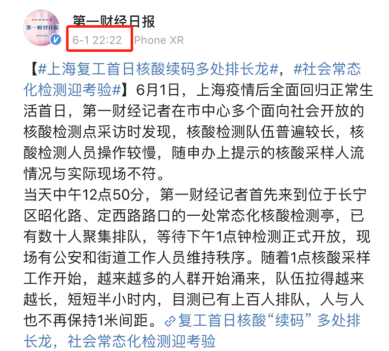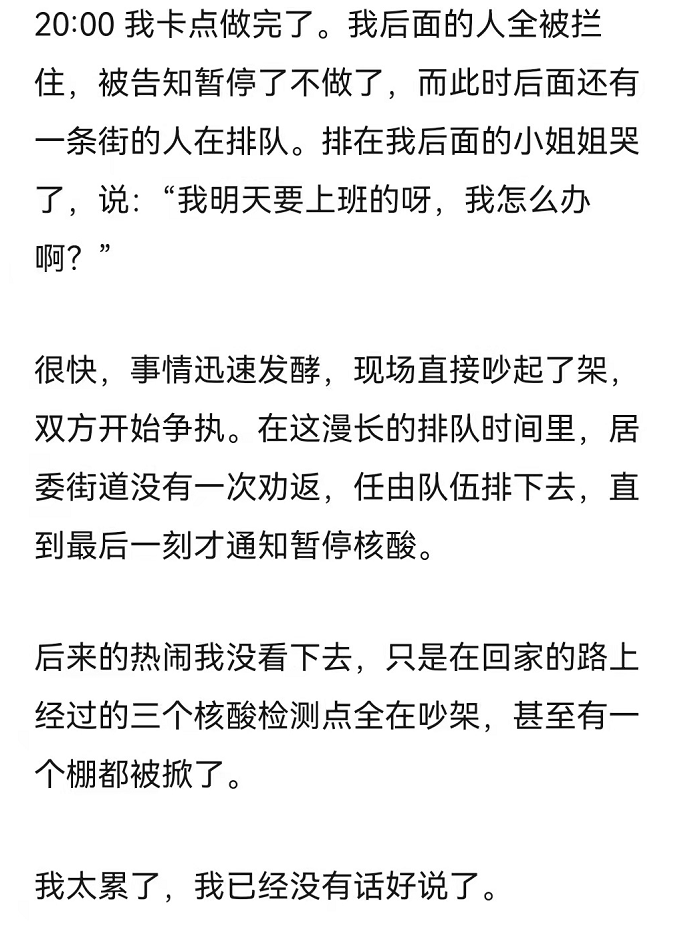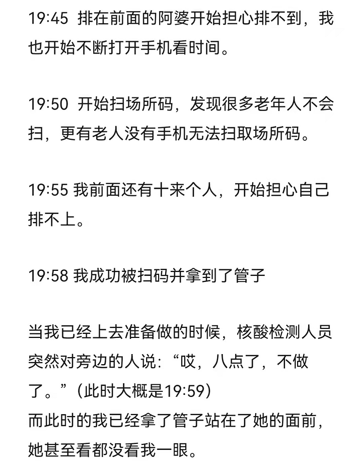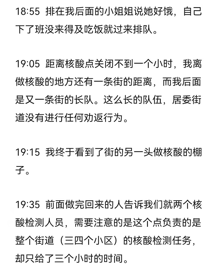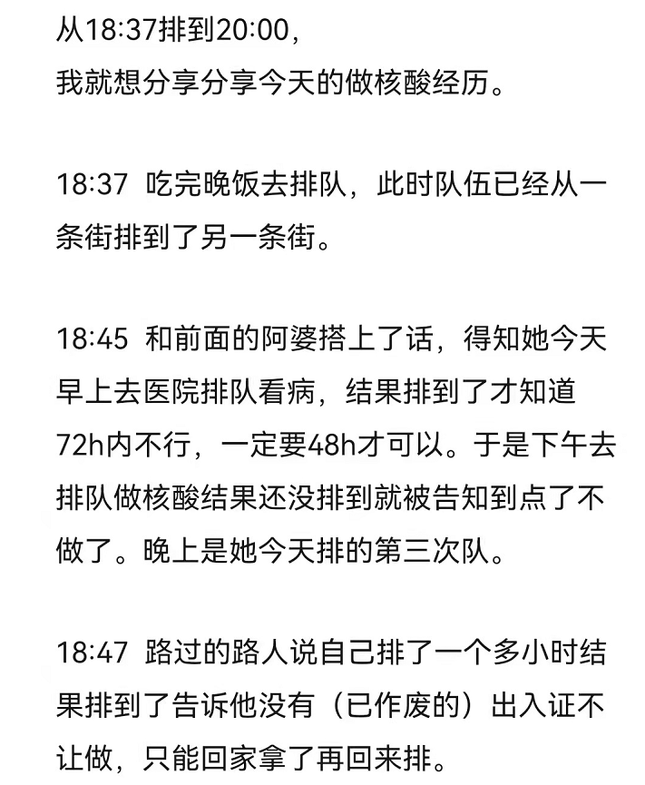 昨晚有网友为了做核检,从六点半排队排到八点,这是他的亲历记。