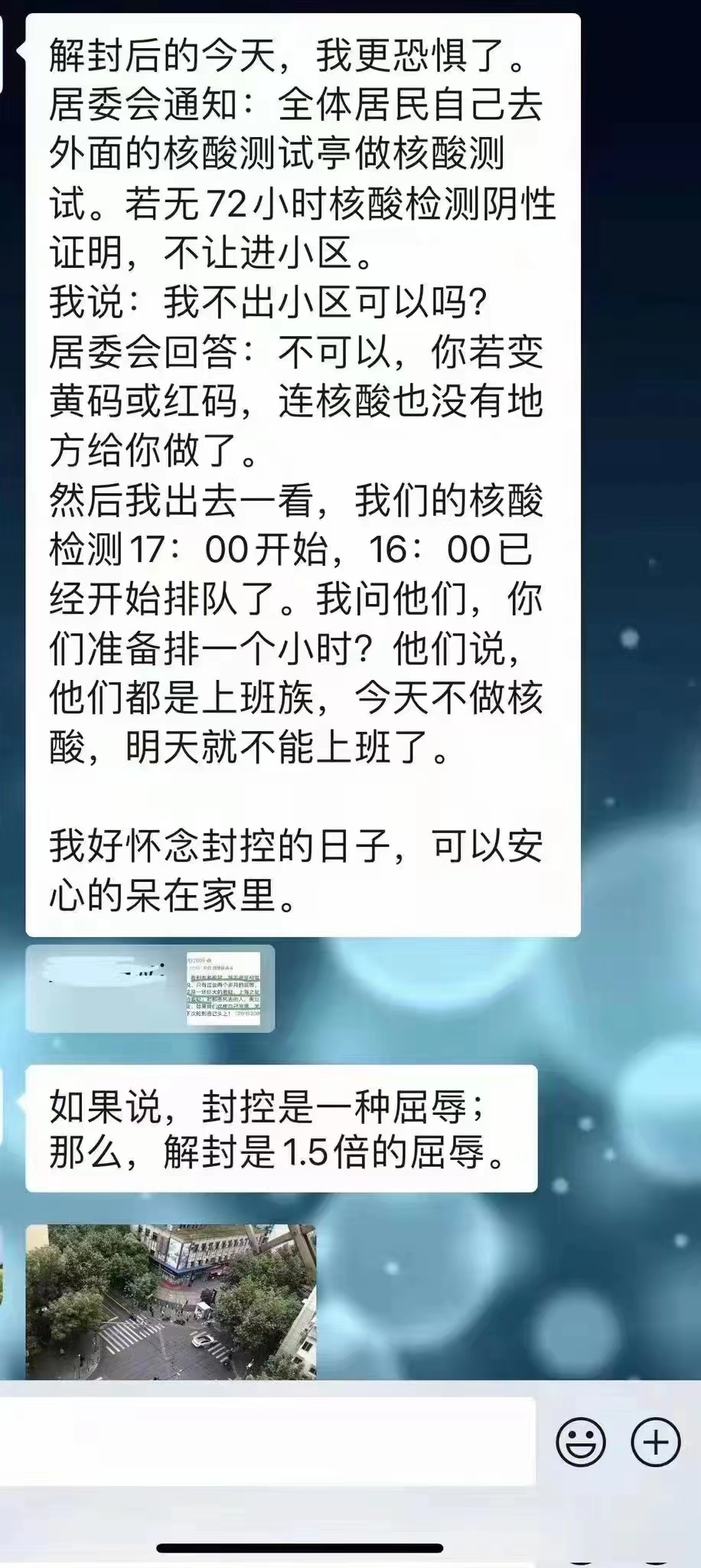 还有网友在叹息,解封的屈辱是封控的1.5倍。