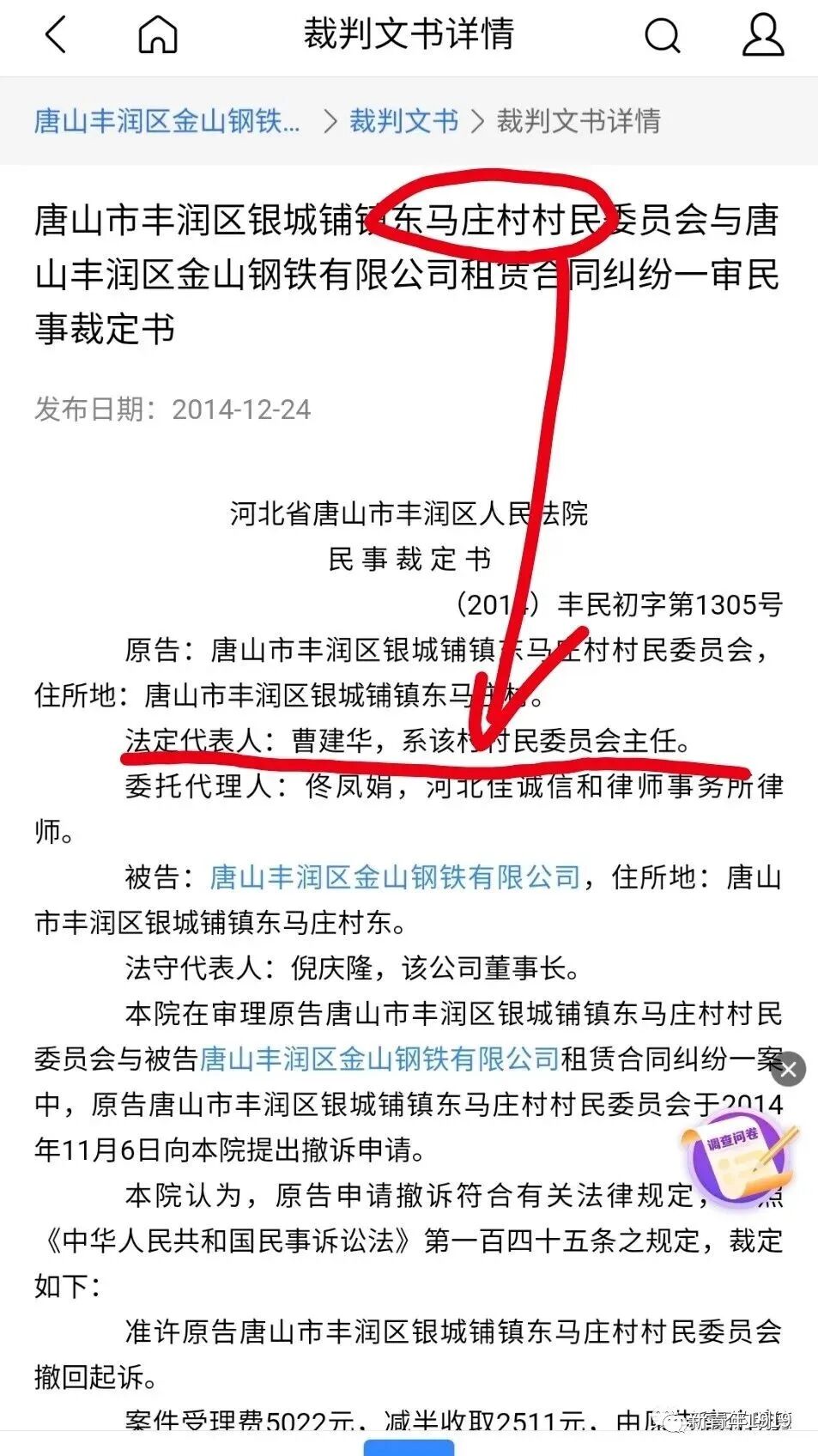 这份2014年的裁判文书显示:曹建华为东马庄村村委会主任。