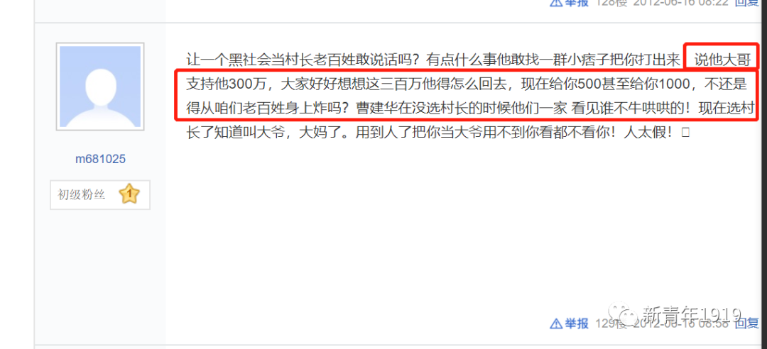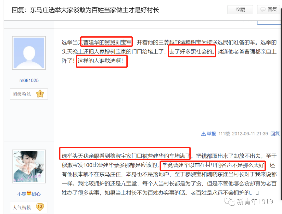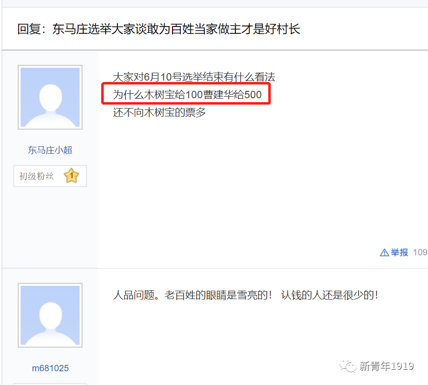 然后,有网友@东马庄小超 爆料说,曹建华给了每个人500元贿选,比另外一个人给的100元高。
