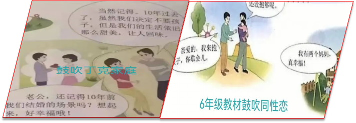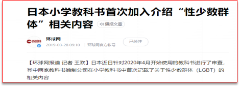 不知道日韩教材中是不是有中国毒教材同样的问题。如在小学启蒙教材中鼓吹丁克、鼓吹LGBT。搜索资料发现,2019年日本文部科学省宣布将LGBT部分内容韩国没有搜索到相关资料。