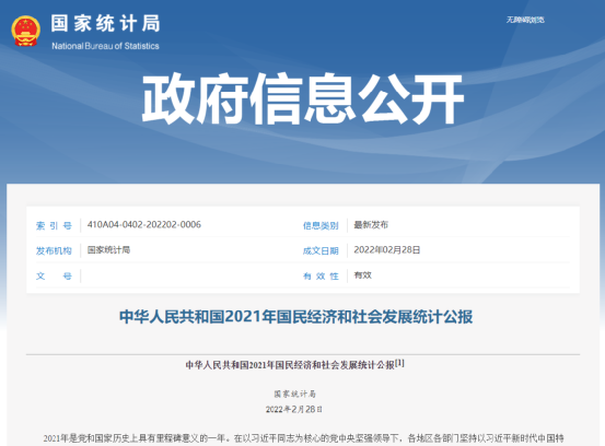 2022年2月28日,国家统计局发布《2021年国民经济和社会发展统计公报》。《公报》透露,2021年全年出生人口1062万人,死亡人口1014万人。