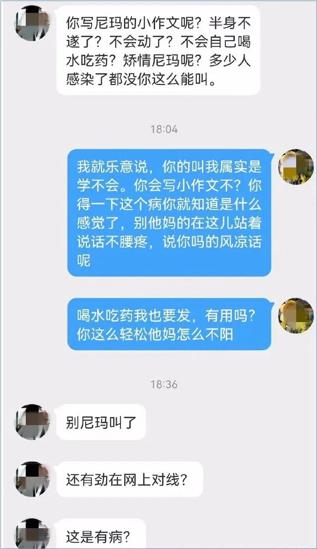护士很坚强,但喷子的冷血却让人愤怒。也基于此,护士的图像打了码,微博名也不公开了。进一步了解详情,可长按识别文末二维码关注三甲传真后,在留言栏回复“护士”,设置有微博链接。网暴和谩骂的人请远离,希望更多的人能给她一些关怀和安慰吧。