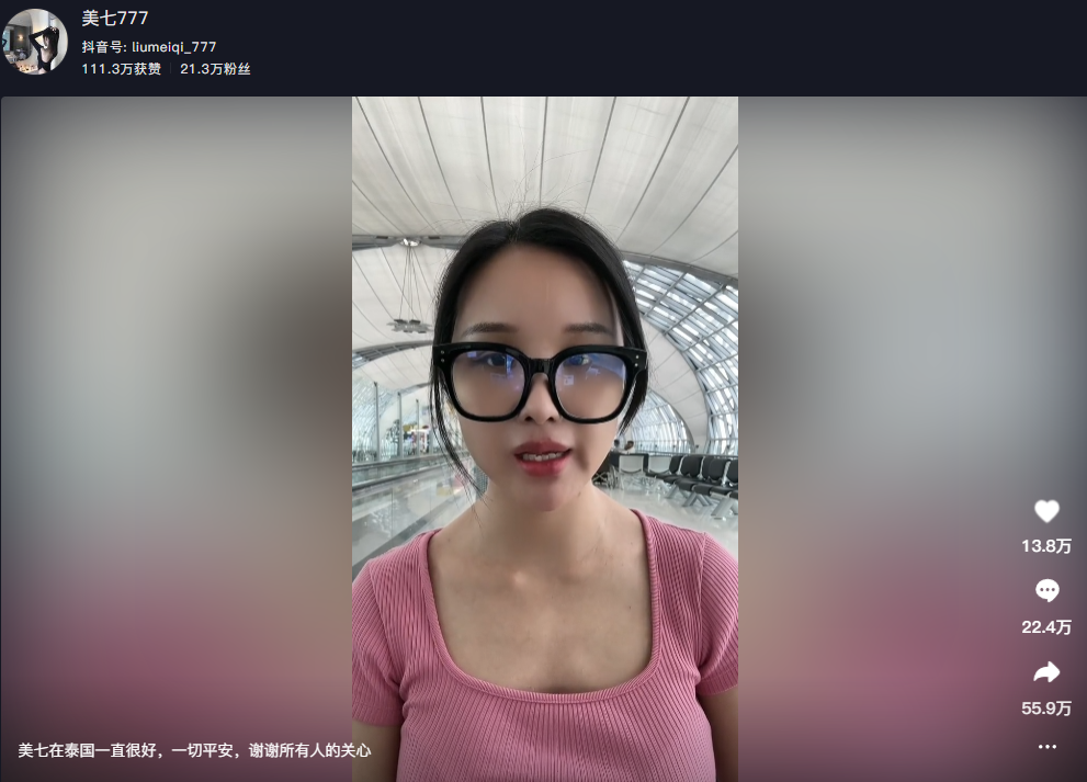 有个叫五嫂的网红,去柬埔寨后,发的最后一条视频是:“回不来了。”然后,她的账号都已经被注销了。有网友总结了一下,近期去泰国后突然就断更的网红有彭十六、miss、天元邓刚、糖醋味小灰灰、美七777等人。