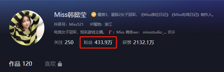 队长特意去看了一下,Miss的抖音账号有433万粉丝。这是一个百万粉丝的大账号,其商业价值是不可低估的。作为一个正常网红,吃着网红饭,作用433万粉丝,没有意外的话,是不可能停更的。就像队长,只有20多万粉丝,但队长也极少断更。即便断更,顶多也就两三天,绝对不会超过1周。