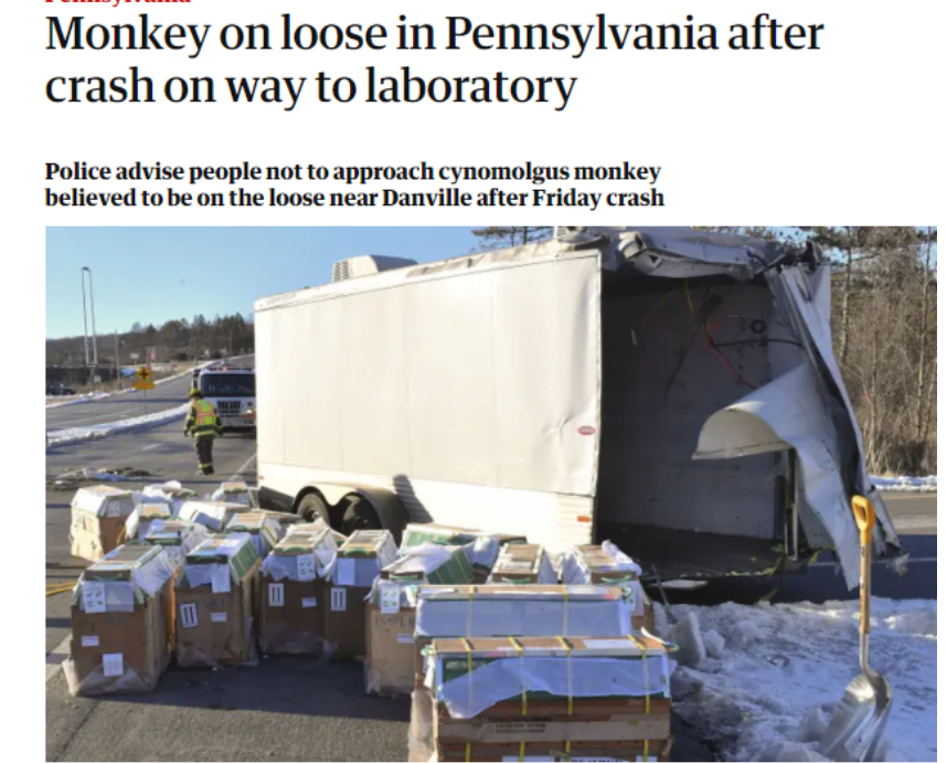 宾西法利亚猴子的意外逃跑,则因为美疾控中心快速对3只逃跑猴子安乐死,美警方严厉警告“任何人不得接近”,一名美国妇女接触后“感染疑似新冠病毒”,再次暴露了一项美国“神秘的生物病毒计划”。
