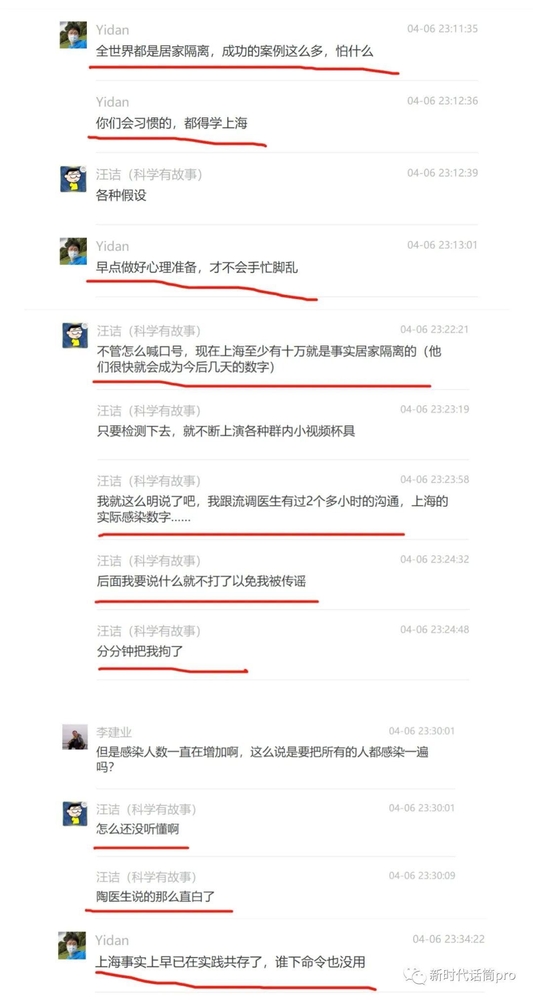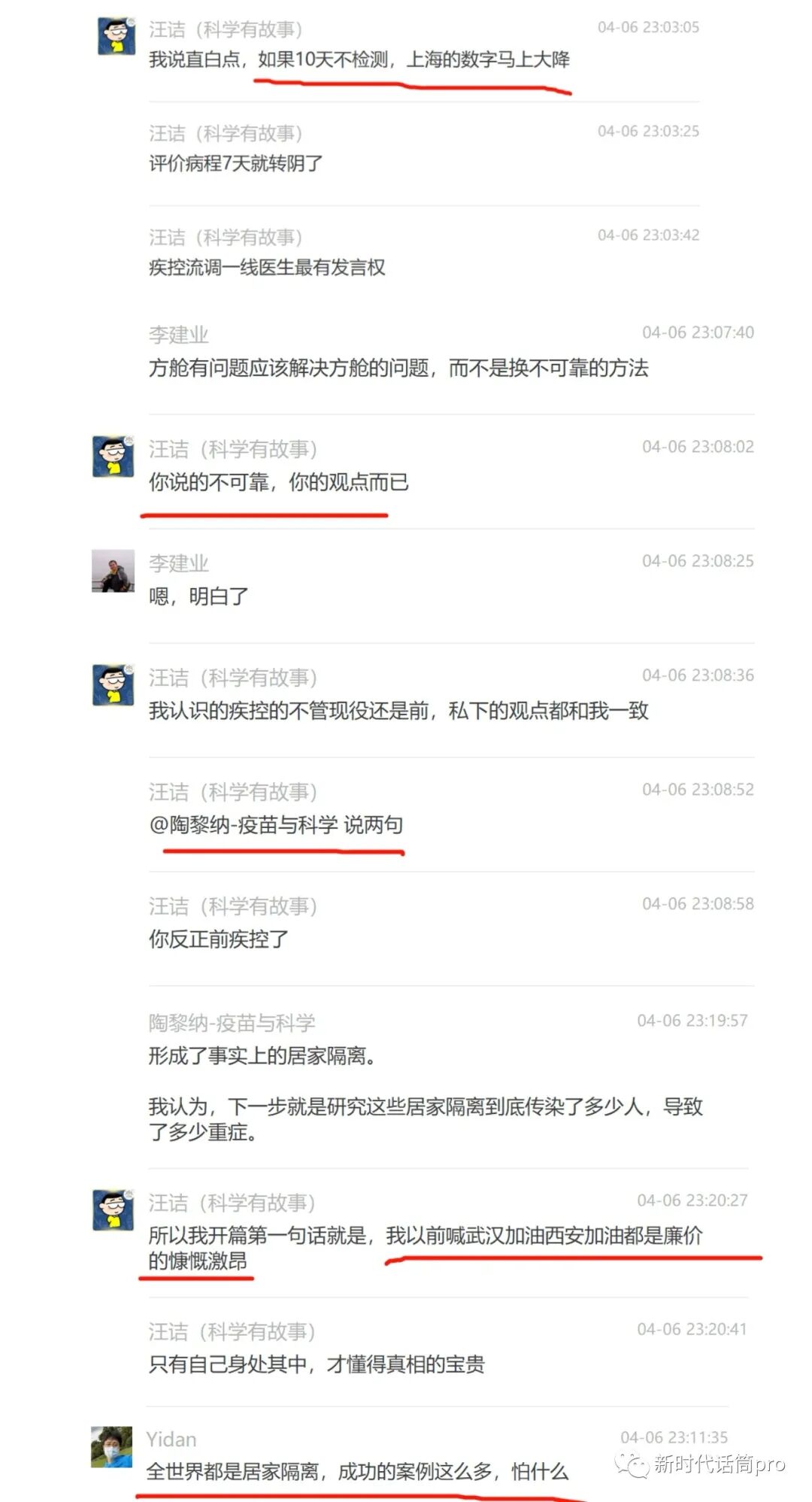 还是4月2日,科普达人汪洁采访浦东疾控专家朱医生,4月3日这段采访录音传遍全网。核心内容:奥密克戎就是流感、没有重症和死亡、居家隔离、不用治疗一周左右就会转阴。