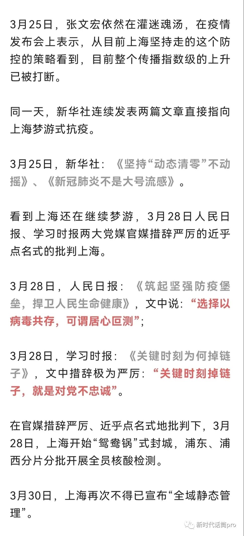 也是在4月2日同一天,孙副总理赶赴上海,带来中央指示:要坚持“动态清零”总方针不犹豫不动摇,态度坚决果干,行动迅速有力…… 4月2日是关键的一天,在“共存派”疯狂的反扑下,中央一锤定音。4月3日解放军、全国各地医疗队赶赴上海开展支援。