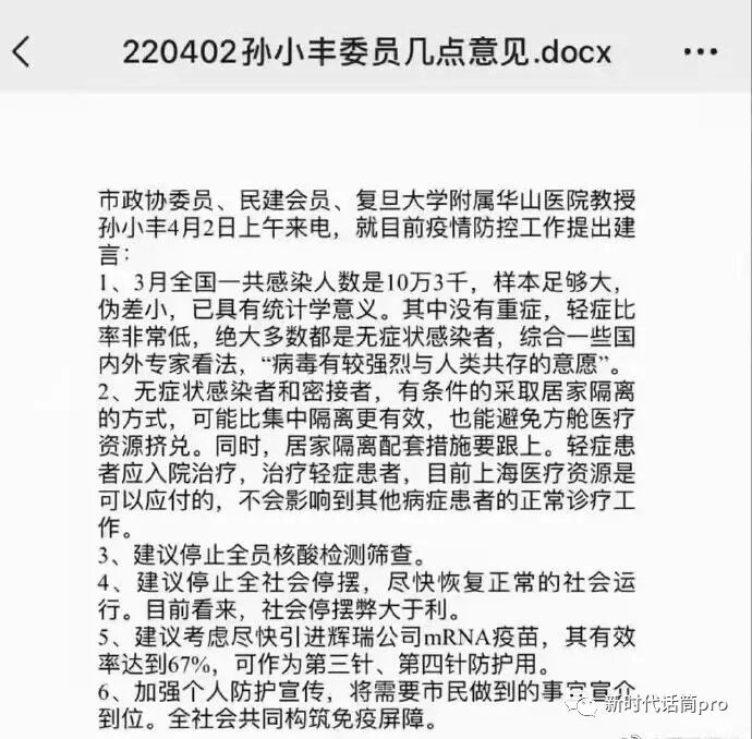 张主任的同事,孙小f 在4月2日继续发表放开、与病毒共存的言论,而且是以政协委员的身份向上面提议的。