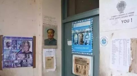这是坦桑尼亚,姆贝亚火车站的一个办公室,他们的墙上不仅贴着中、坦、赞三国领导人的照片,而且还专门有一张毛主席的画像,不禁令人肃然起敬。